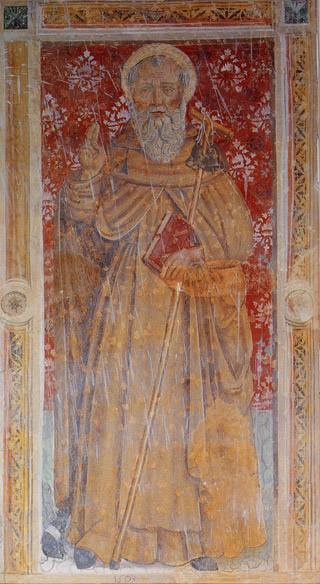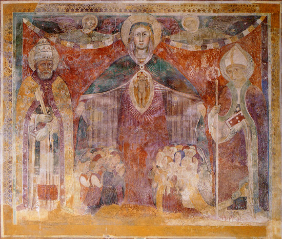 La decorazione qui rinvenuta non risponde infatti a moduli noti: un sole raggiato è posto al centro del catino absidale, che è spartito da riquadri con cornici entro cui sono inserite losanghe e rosette.